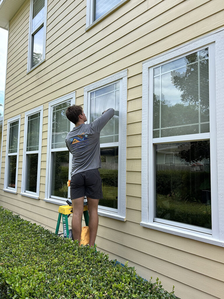 Over time, dust, pollen, hard-water spots, and grime dull your glass and block natural light. Our trained techs use pro-grade tools and safe, proven methods (pure-water poles for upper stories and meticulous hand squeegee work up close) to leave every pane spotless. We protect your home with drop cloths and careful prep, and we tidy up before we go—every time.